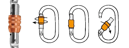 Кейлок, расположенный под углом, препятствует нежелательному сцеплению с верёвкой, петлёй или страховочной системой.